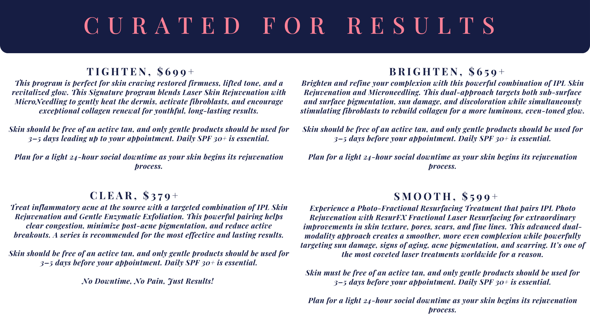 Designed for clients committed to real change, these exclusive SkinPro programs offer a strategic, results-driven approach to skin health.